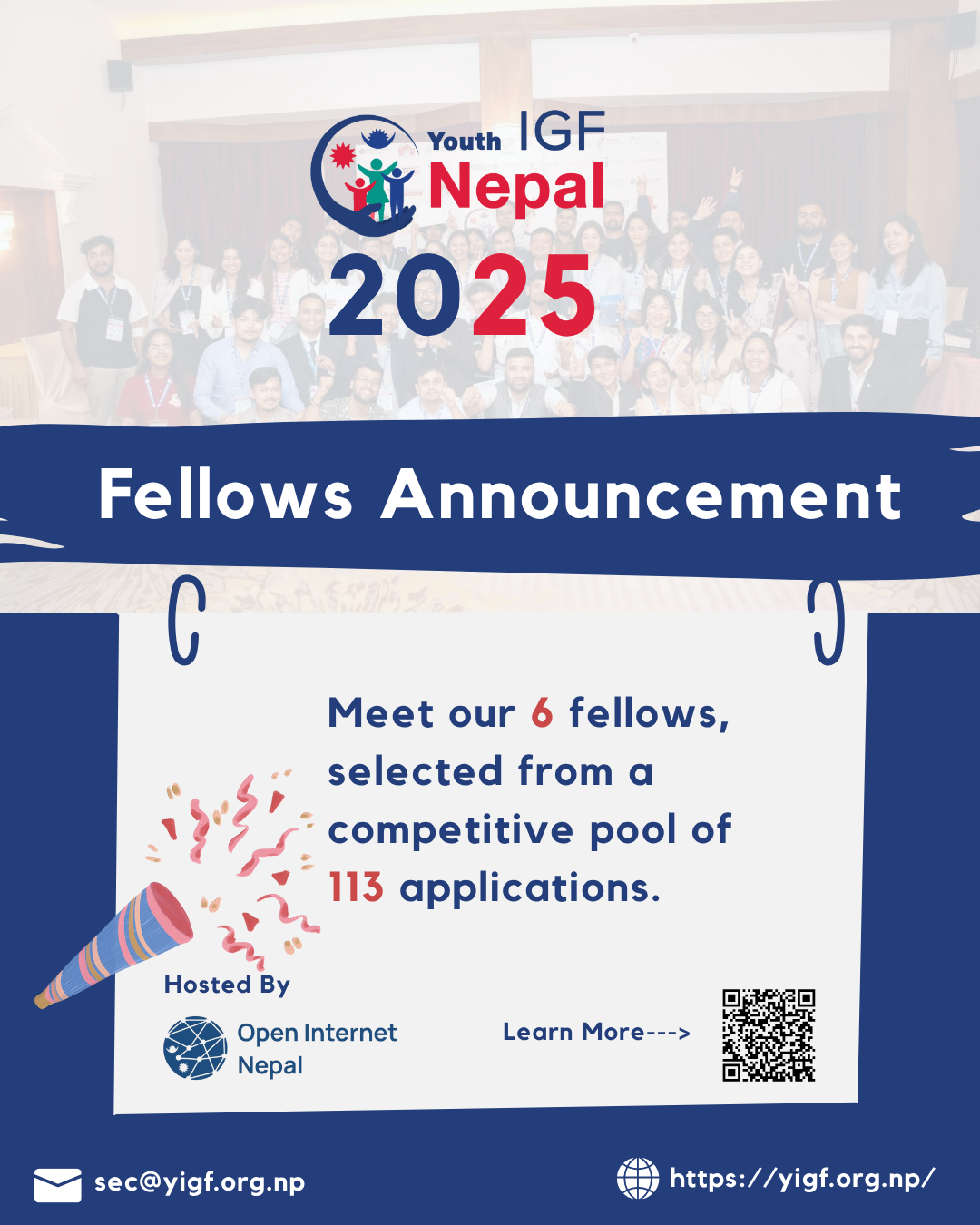 We are thrilled to introduce the yIGF Fellows 2025! This year, we received an overwhelming 113 applications from passionate young leaders across Nepal, and after a rigorous selection process, 6 outstanding fellows have been chosen. These fellows will not only participate in yIGF Nepal 2025 in Kathmandu but will also gain opportunities to engage in complementary events such as Encryption Day and other activities that strengthen their role within the broader Internet Governance ecosystem.